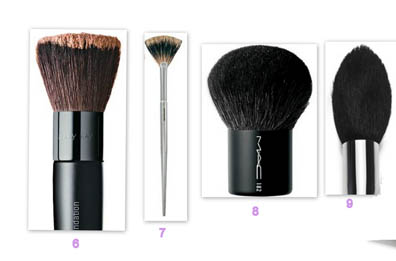 Pincel 8: Kabuki. Esse pincel é ótimo para levar na bolsa, pois é pequeno, não ocupa muito espaço e tem várias funções. Esse tipo de pincel pode ser de cerdas sintéticas e naturais, podendo servir para aplicação de pó e é perfeito para aplicação de base em pó compacta e mineral. Existem alguns kabuks bem pequenininhos, que são ideais para aplicação de blush.
