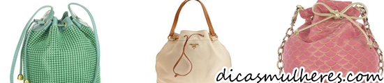 Esta bolsa irá se tornar o hit do verão, pois é perfeita para a estação. Leve, confortável e bem pratica, ela promete tomar as ruas das mais movimentadas praias do Brasil. Ela literalmente tem um formato de saco com a boca com a “murcha”. Tem uma alça bem comprida, o que a torna mais leve.