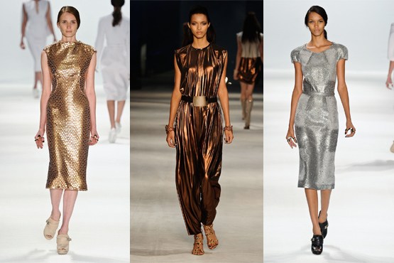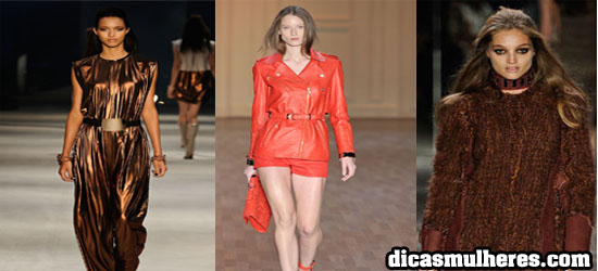 O uso do metal é uma das maiores apostas da temporada outono/inverno 2012! Esteve presente em diversos desfiles no SPFW, como nas grifes Alexandre Herchcovitch e Juliana Jabour. O metal vem deixar o seu brilho em nossos acessórios, como bolsas, sapatos, brincos, colares e também vem marcar nossas roupas, deixando o look mais ousado e elegante! O uso de metalizado foi mais intenso nas cores prata, dourado e cobre. Porém pudemos ver peças metalizadas em contraste com o azul, que por sinal, ficou lindo! Esta é uma tendência que eu vou usar e repassar. Acho que todas nós devíamos ter pelo menos uma peça de roupa metalizada e alguns acessórios.
